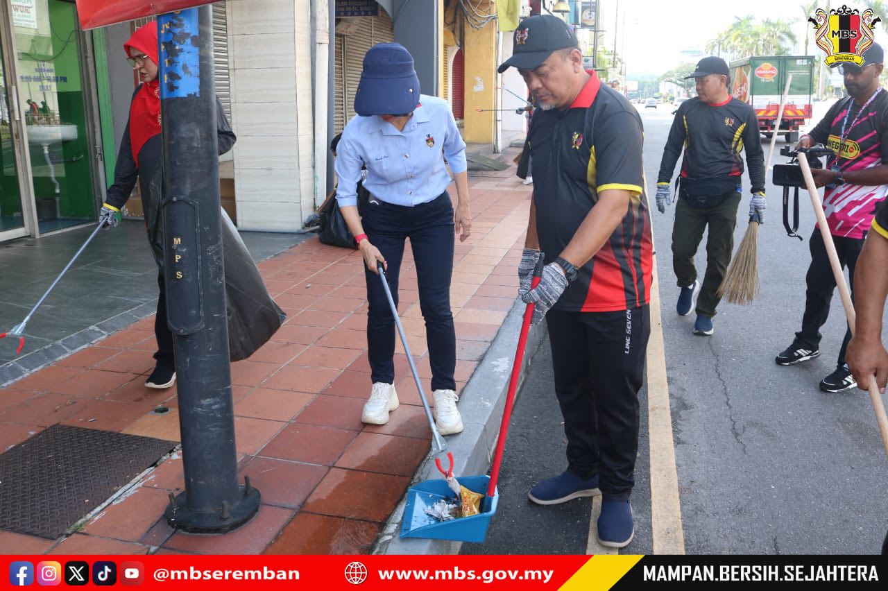 Seremban, 14 December 2025 – The Honourable Puan Nicole Tan Lee Koon, Chairperson of the Tourism, Arts and Culture Action Committee and also the State Assembly Member for Bukit Kepayang, officiated the Launch of the Cleaning Operations in Seremban Town Centre. Also present were YBhg. Dato’ Ir. Ts. Haji Masri bin Baharuddin, Mayor of the Seremban City Council; MBS Council Members; Ir. Ts. Br. Mohd Kamal bin Mohd Yusof, MBS Secretary; Council Members’ Assistants; the Public Works Department; the Royal Malaysia Police; SWCorp; and SWM. Meanwhile, Tuan Haji Mohd Fadhil bin Haji Kamaruddin, Director of Maintenance, delivered a briefing on the programme, which aims to clean areas around Seremban. The operation was led by six groups and covered several roads in the town centre, namely: