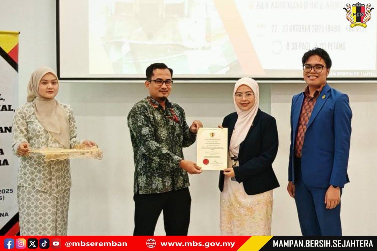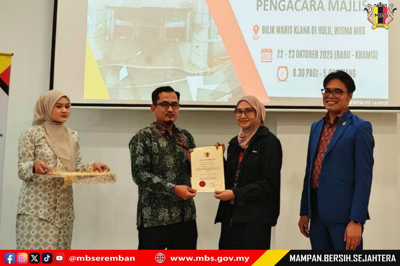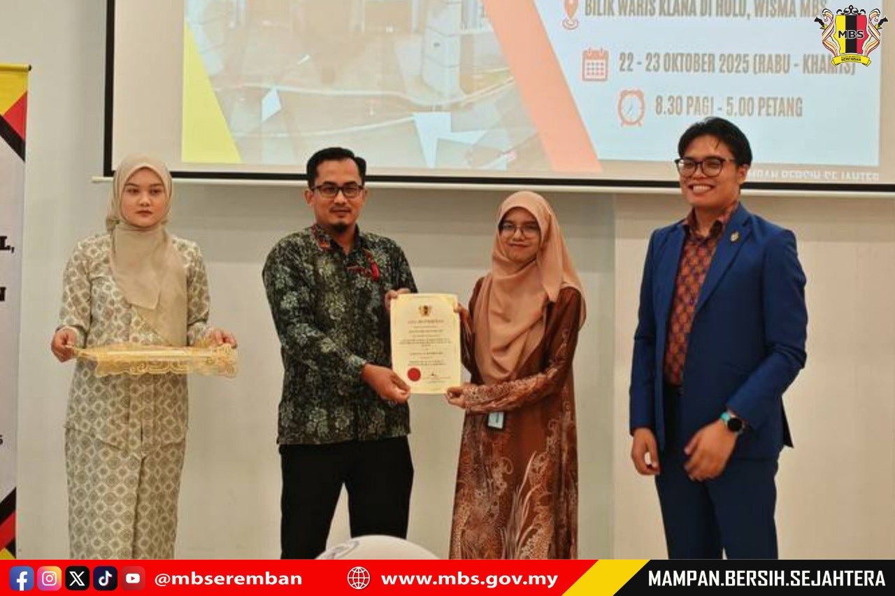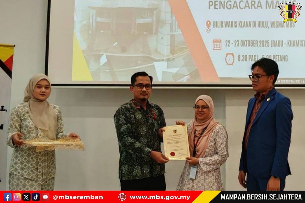 Seremban, 23 October 2025 – The Seremban City Council (MBS) organized a Protocol, Social Etiquette and Event Management Course with Master of Ceremony Training at the Bilik Waris Klana Di Hulu, Wisma MBS. The purpose of this course was to provide participants with knowledge, skills, and exposure on the proper procedures for managing and conducting both formal and informal events according to established standards. MBS invited Mr. Albasya’ari bin Abdul Latif, Public Relations Officer from the Corporate Section, Office of the State Secretary of Negeri Sembilan, as the facilitator for the two-day course. A total of 40 participants comprising staff from various departments were selected to attend the course. The closing ceremony was officiated by Mr. Shamaruddin bin Saidin, Head of the Corporate Communications Unit, MBS.