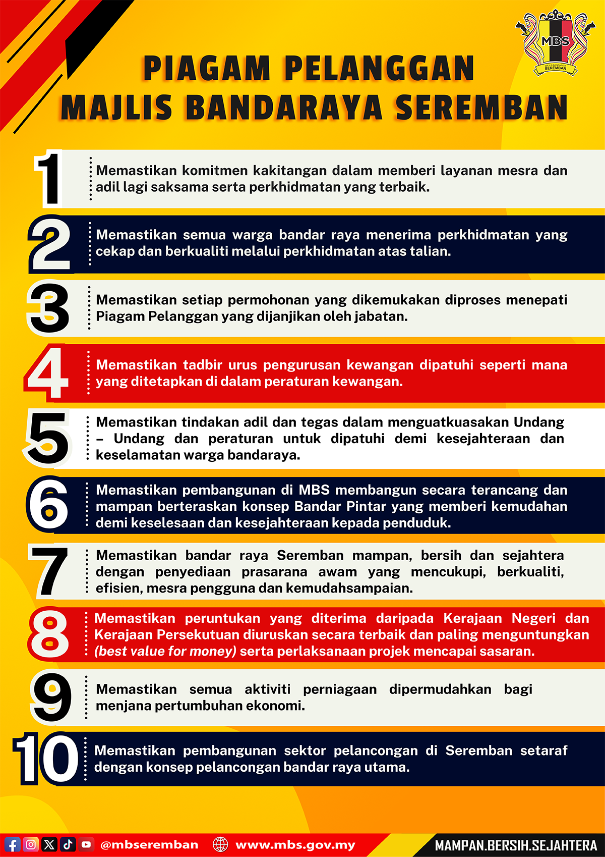 | To ensure all reports received in regards with the management and administration be tackled within : Public report (Aduan Am) in written form Online reports | According to category 7 days-Simple 14 days-Intermediate 21 days-Complex 3 working days |