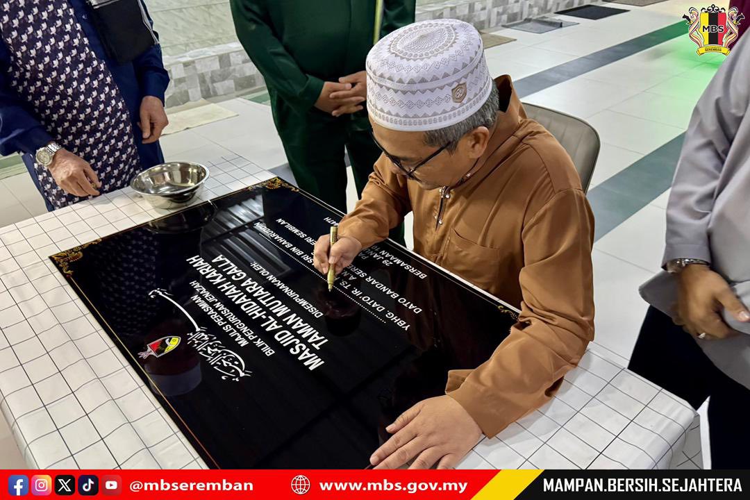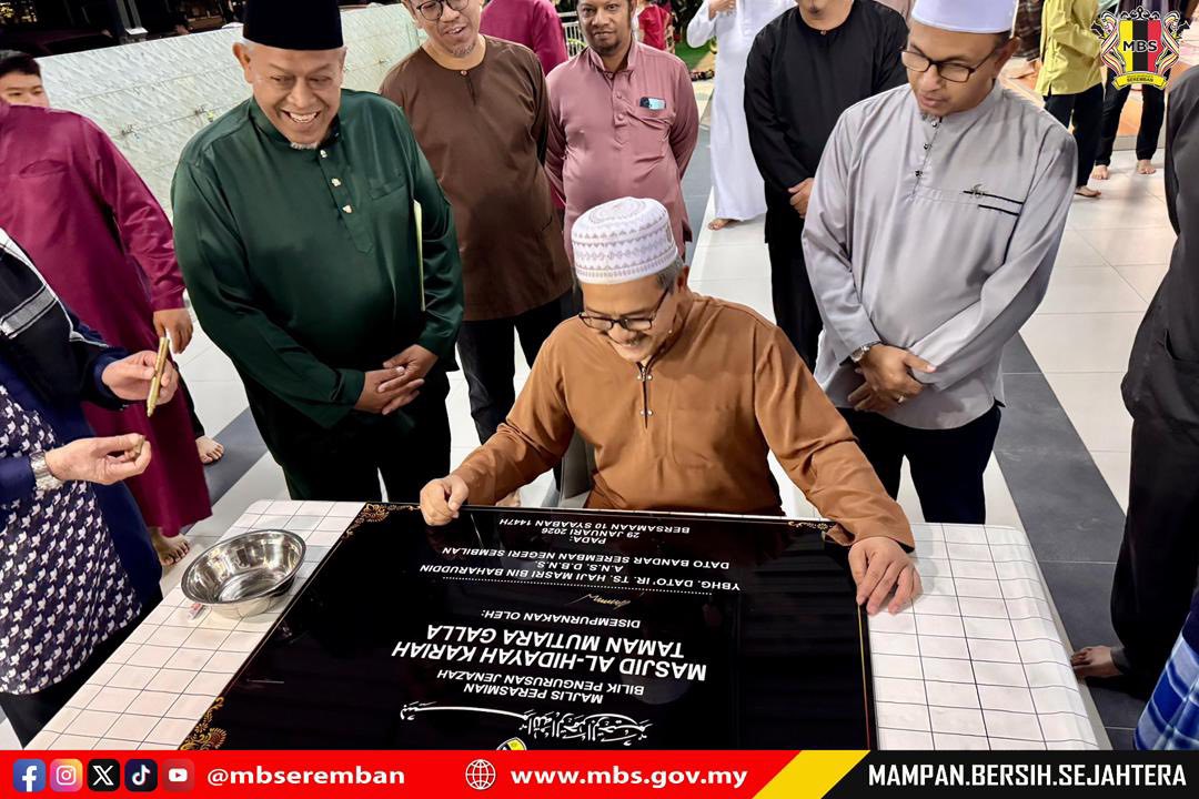 Seremban, 29 Januari 2026 - YBhg. Dato’ Ir. Ts. Haji Masri bin Baharuddin, Datuk Bandar Majlis Bandaraya Seremban telah hadir ke Masjid Al-Hidayah Mutiara Galla bagi Majlis Bacaan Yassin sempena Ulang Tahun ke 6 Majlis Bandaraya Seremban. Selain dapat mengimarahkan masjid-masjid di sekitar kawasan pentadbiran majlis, ianya juga dapat menjaga hubungan baik di antara MBS dan qariah-qariah yang terlibat dalam membincangkan berkenaan hal-hal yang berkaitan di kawasan qariah. YBhg. Datuk Bandar juga turut berbesar hati untuk merasmikan Bilik Pengurusan Jenazah Masjid dan juga menyumbangkan satu unit Waterjet kepada pihak Masjid untuk digunakan dalam misi bantuan awal sekiranya berlaku bencana dan banjir dalam kawasan setempat. Turut hadir, Tuan Ir. Ts. Br. Mohd Kamal bin Mohd Yusof, Setiausaha MBS, Pengarah-pengarah Jabatan MBS, Ketua-ketua Unit MBS dan warga kerja Majlis Bandaraya Seremban.