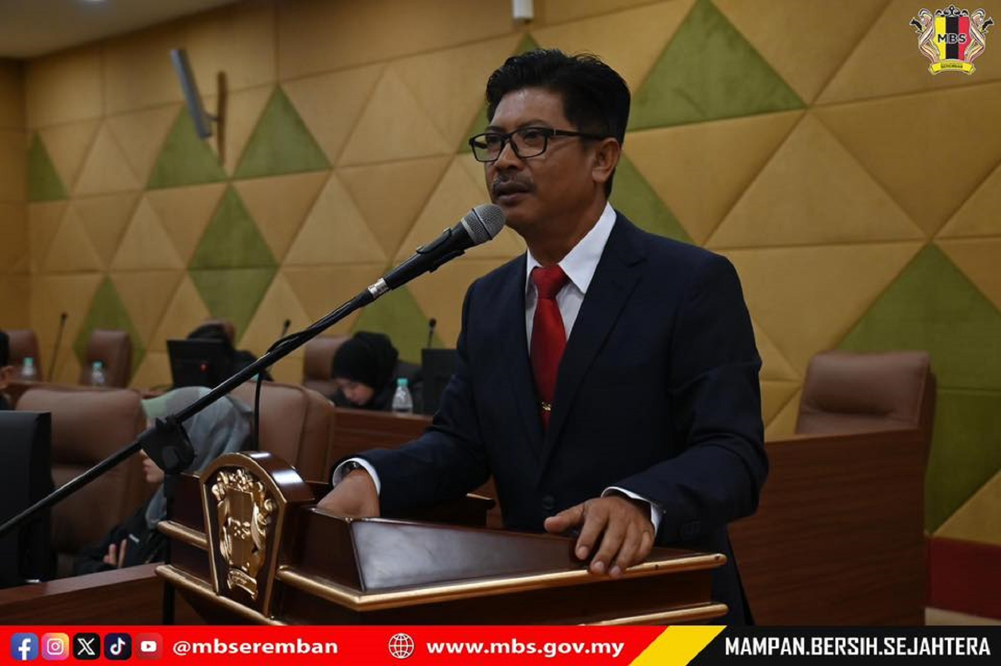 Seremban, 28 Januari 2026 - YBhg. Dato’ Ir.Ts. Haji Masri bin Baharuddin, Datuk Bandar Majlis Bandaraya Seremban telah mempengerusikan Mesyuarat Majlis Penuh (MMP) Bil.1/2026 di Bilik Dato’ Klana Petra, Wisma MBS. Mesyuarat ini turut dihadiri oleh 24 orang Ahli Majlis, Majlis Bandaraya Seremban, Tn, Ir. Ts. Br. Mohd Kamal bin Mohd Yusof, Setiausaha Majlis Bandaraya Seremban, Ketua-Ketua Jabatan dan Ketua-Ketua Unit Majlis Bandaraya Seremban. Turut hadir ialah rakan-rakan media sebagai pemerhati di dalam mesyuarat ini. Untuk makluman, mesyuarat ini juga disiarkan secara langsung menerusi laman sosial rasmi Facebook MBS dan dibantu oleh jurubahasa daripada Persatuan Orang Pekak Negeri Sembilan (Nesda).