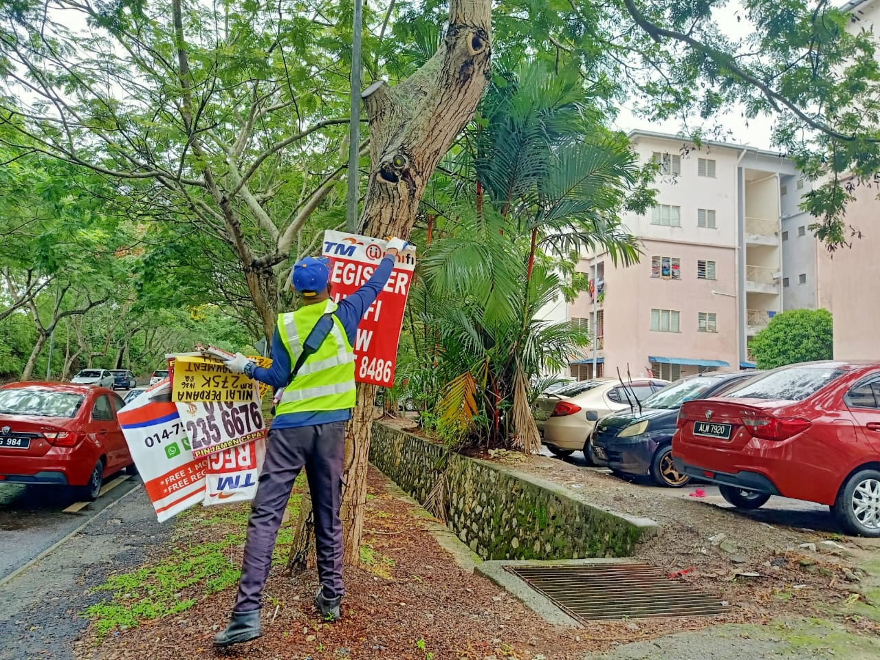 KERJA-KERJA MEMBUKA PAPAN IKLAN/BANTING/"BANNER" HARAM