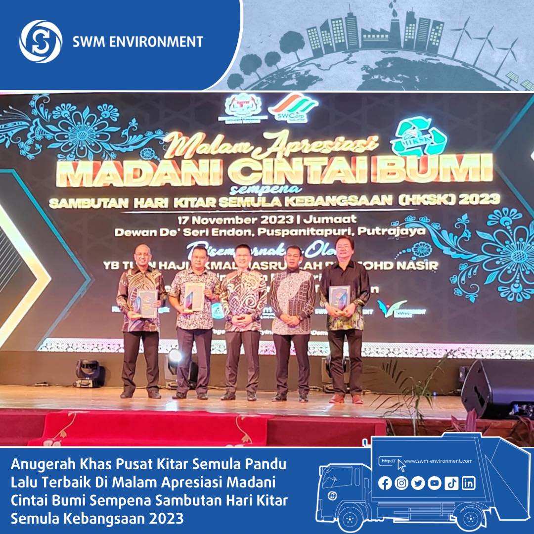 Tahniah! Pusat Pandu Lalu KITARecycle SWM Environment kerana menerima Anugerah Khas Pusat Kitar Semula Pandu Lalu Terbaik pada Malam Apresiasi Madani Cintai Bumi Sempena Sambutan Hari Kitar Semula Kebangsaan 2023.