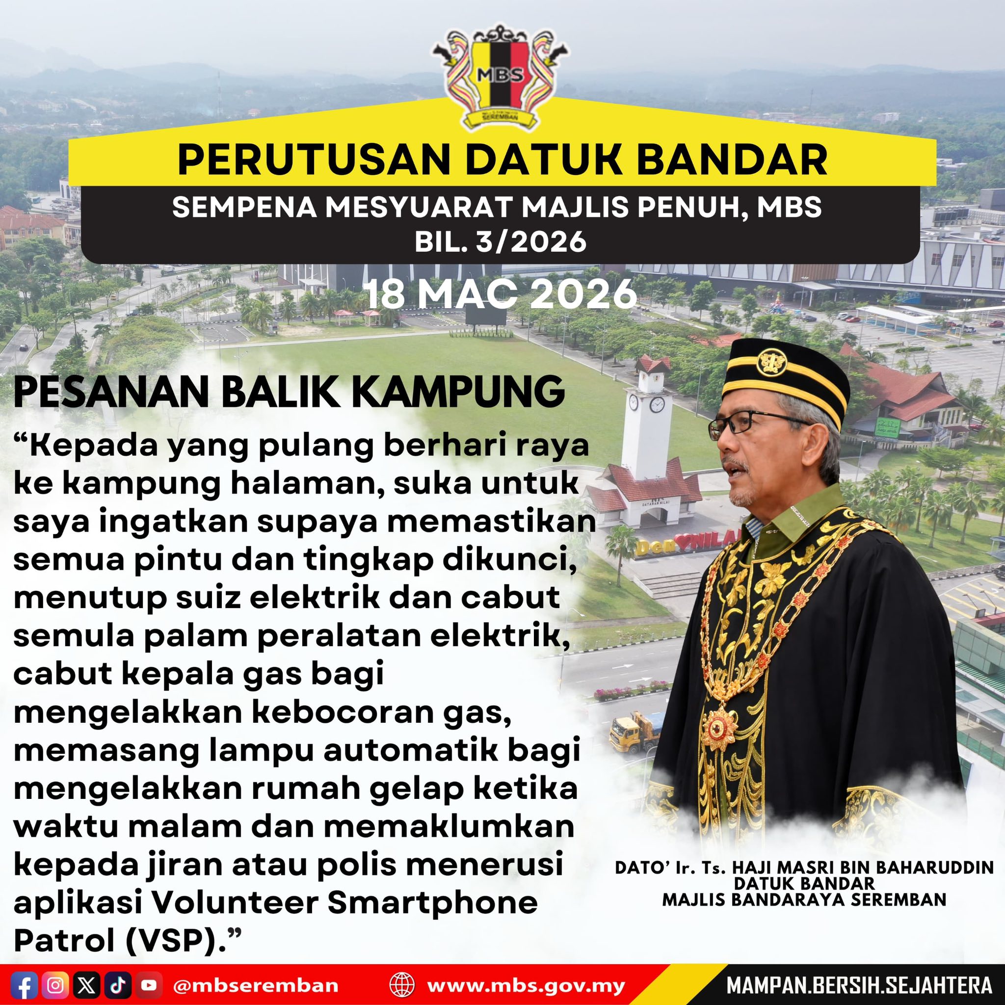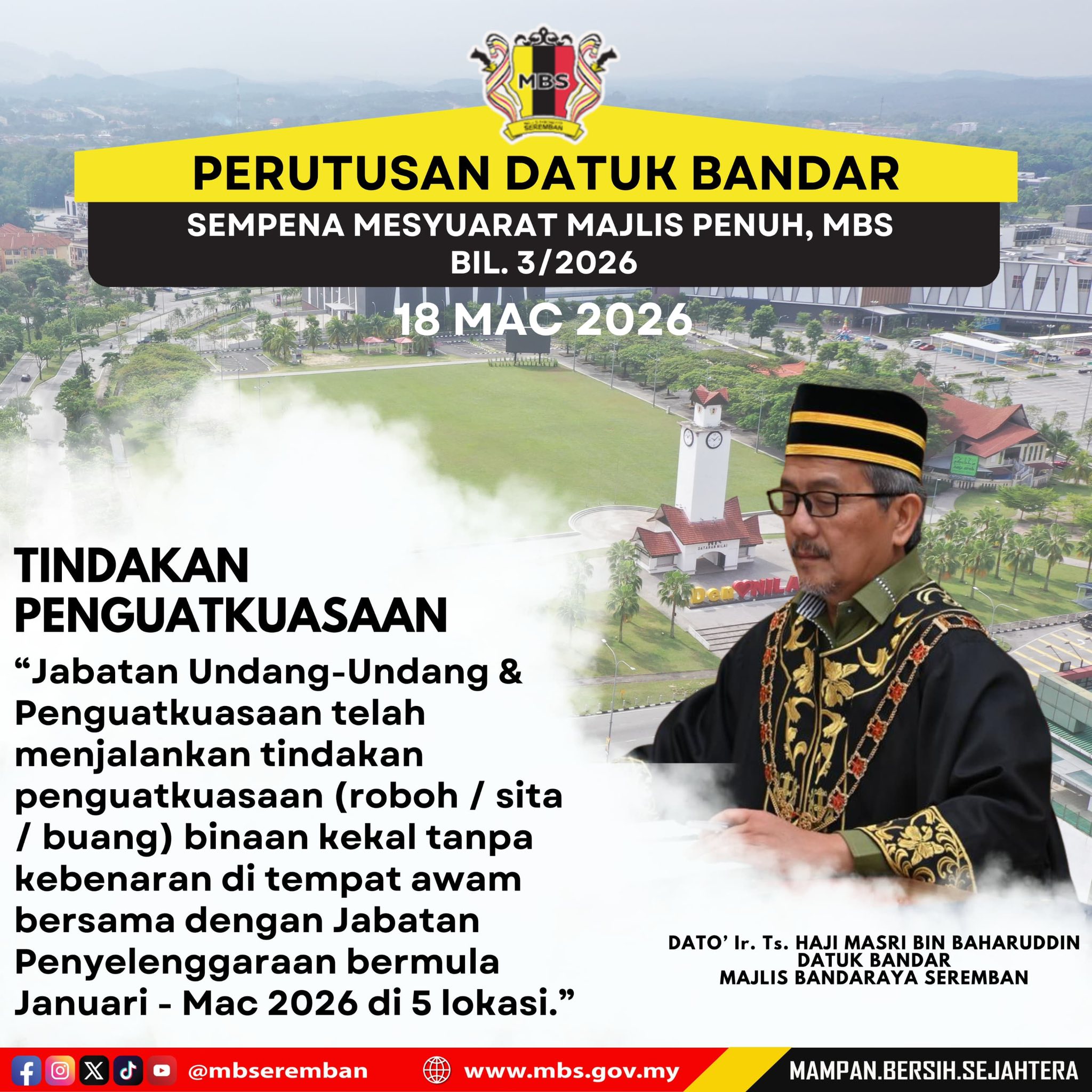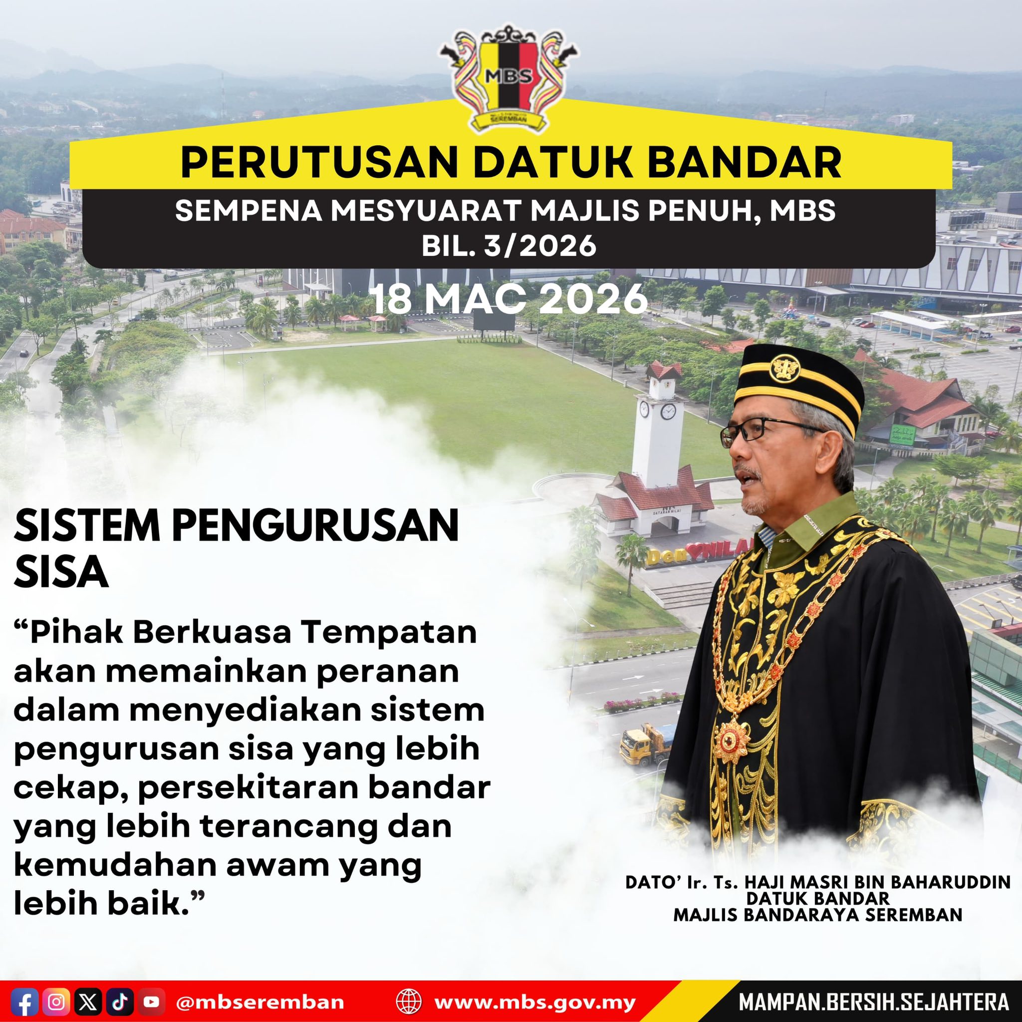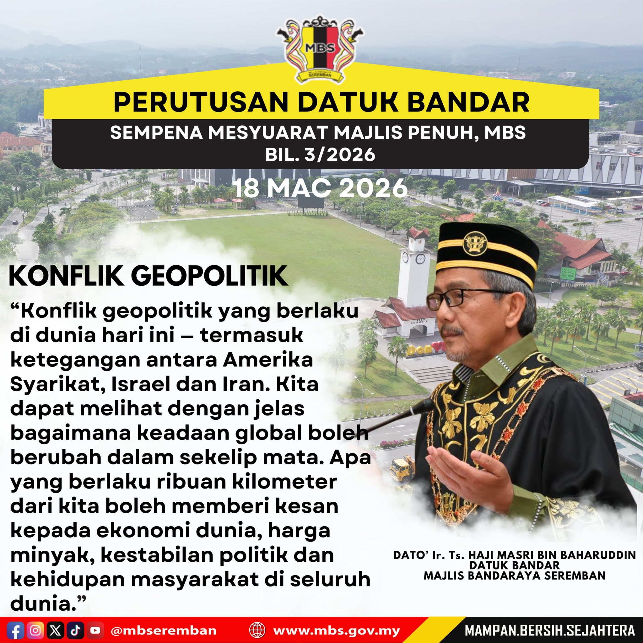 11 views Admin kongsikan antara intipati Perutusan YBhg. Datuk Bandar semasa Mesyuarat Majlis Penuh Bil.3/2026 yang telah bersidang pada 18 Mac 2026.