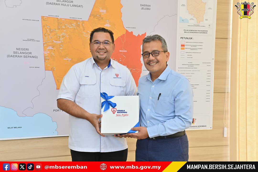 Seremban, 27 Februari 2026 – YBhg. Dato’ Ir. Ts. Haji Masri bin Baharuddin, Datuk Bandar Majlis Bandaraya Seremban telah menerima kunjungan hormat daripada Tenaga Nasional Berhad Negeri Sembilan di Pejabat Datuk Bandar, Wisma MBS. Delegasi TNB Negeri Sembilan diketuai oleh Tuan Ir. Hj. Mohd Zaiddy Bin Mat Rajali, General Manager (Retail & Stakeholders - Negeri Sembilan) Encik Zahrul Effendy bin Shahid, Pengurus (State Retail Partner), Puan Nur Adzreen binti Adzman, Pengurus (State Retail Cust. & Partner Engage) TNB Negeri Sembilan. Turut hadir Tuan Ir. Ts. Br. Mohd Kamal bin Mohd Yusof, Setiausaha MBS & En Nuh Nurul Mushawwir Bin Abdul Aziz, Ketua Jurutera Jabatan Kejuruteraan MBS.