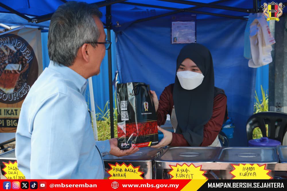 Sendayan, 17 Mac 2026 - YBhg. Dato’ Ir. Ts. Haji Masri bin Baharuddin, Datuk Bandar Majlis Bandaraya Seremban (MBS) telah mengadakan lawatan di Bazar Ramadan Merchant Square, Sendayan. Dalam pada bertemu bersama peniaga, YBhg. Datuk Bandar juga turut menyerahkan cenderamata dan sumbangan barangan keperluan perniagaan kepada peniaga-peniaga bazar ramadan. Turut hadir ialah, Encik Hamdan bin Mohd Noor, Ahli Majlis MBS, Tuan Ir. Ts. Br. Mohd Kamal bin Mohd Yusof, Setiausaha MBS serta Ketua-Ketua Jabatan & Unit MBS.