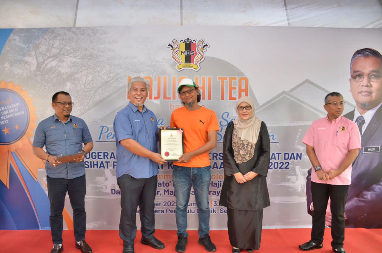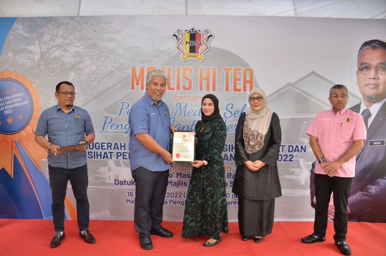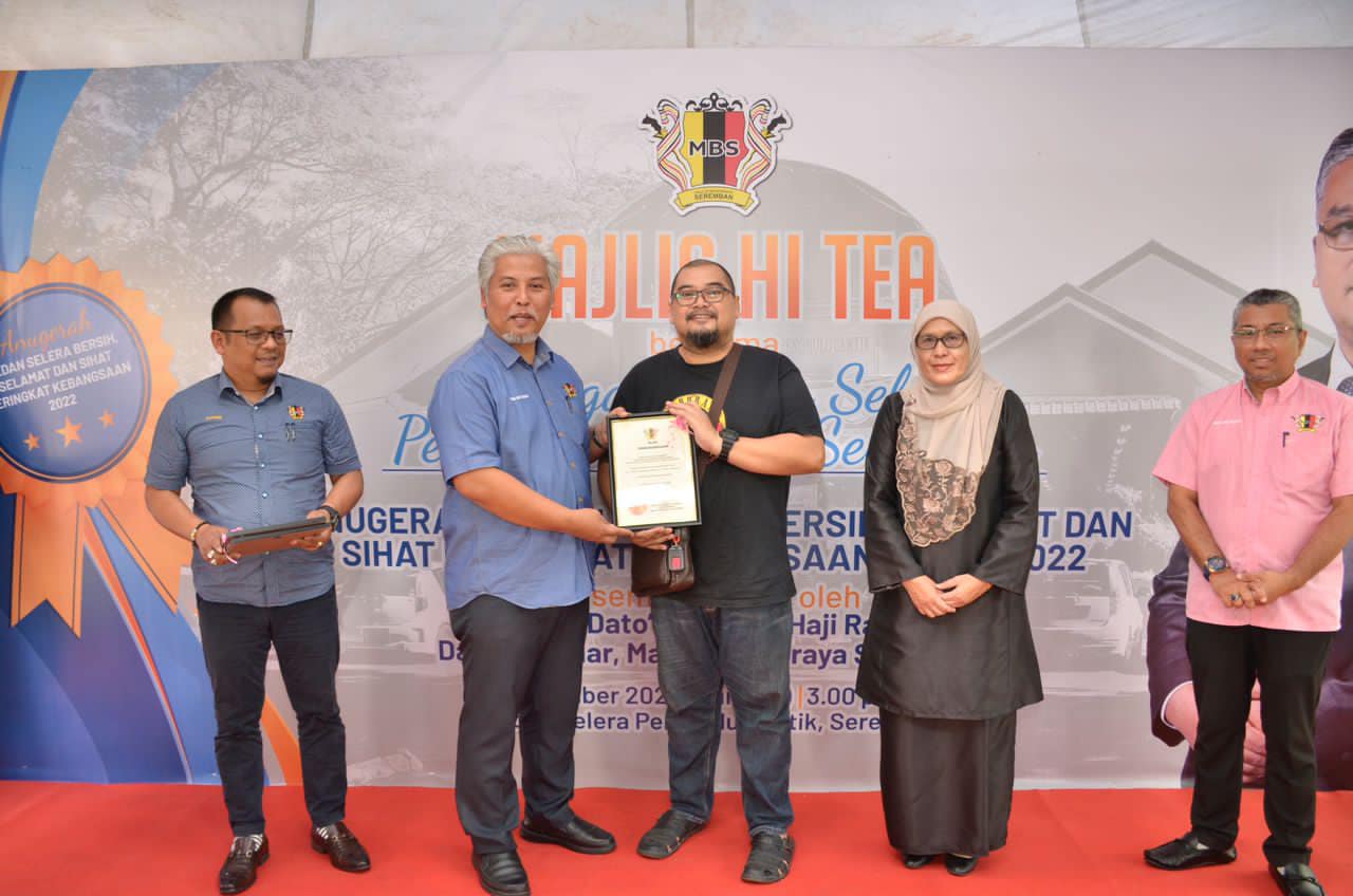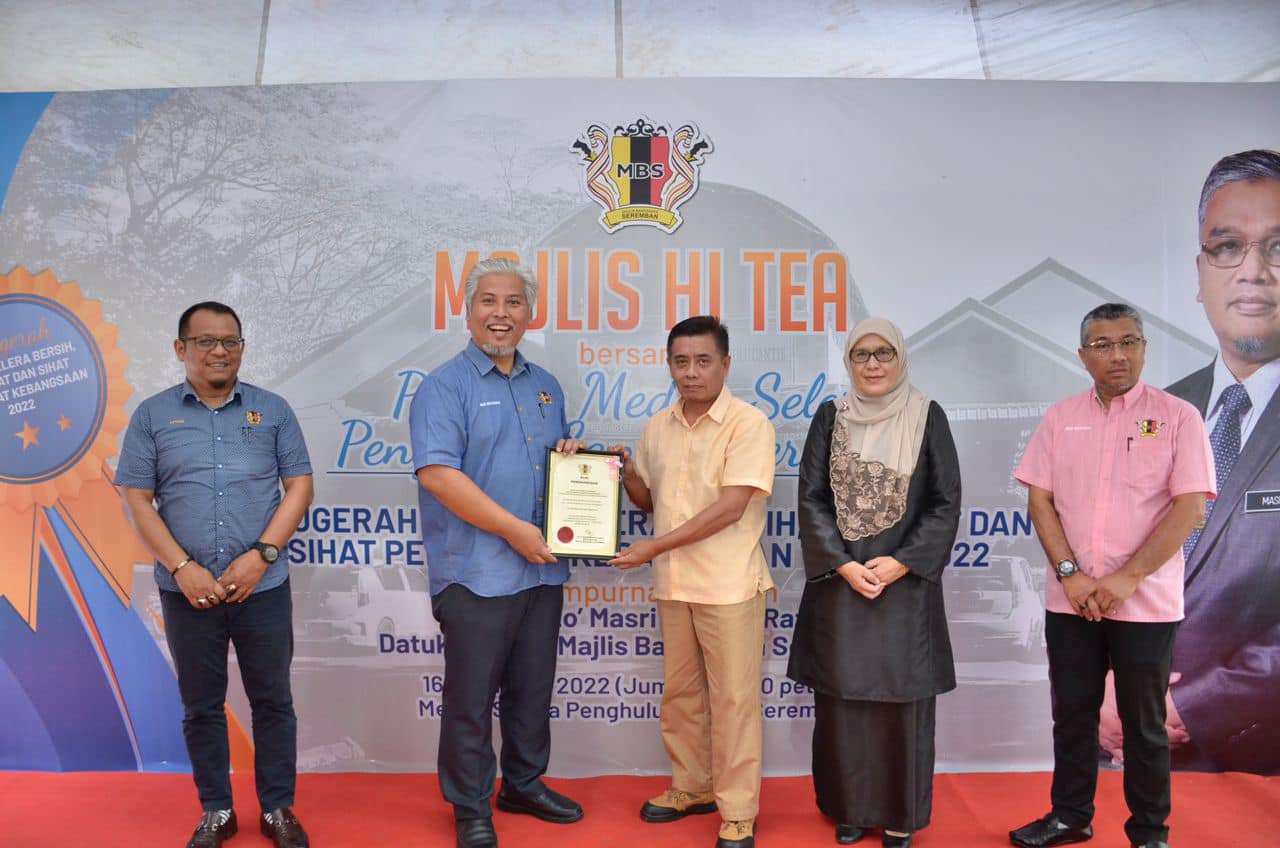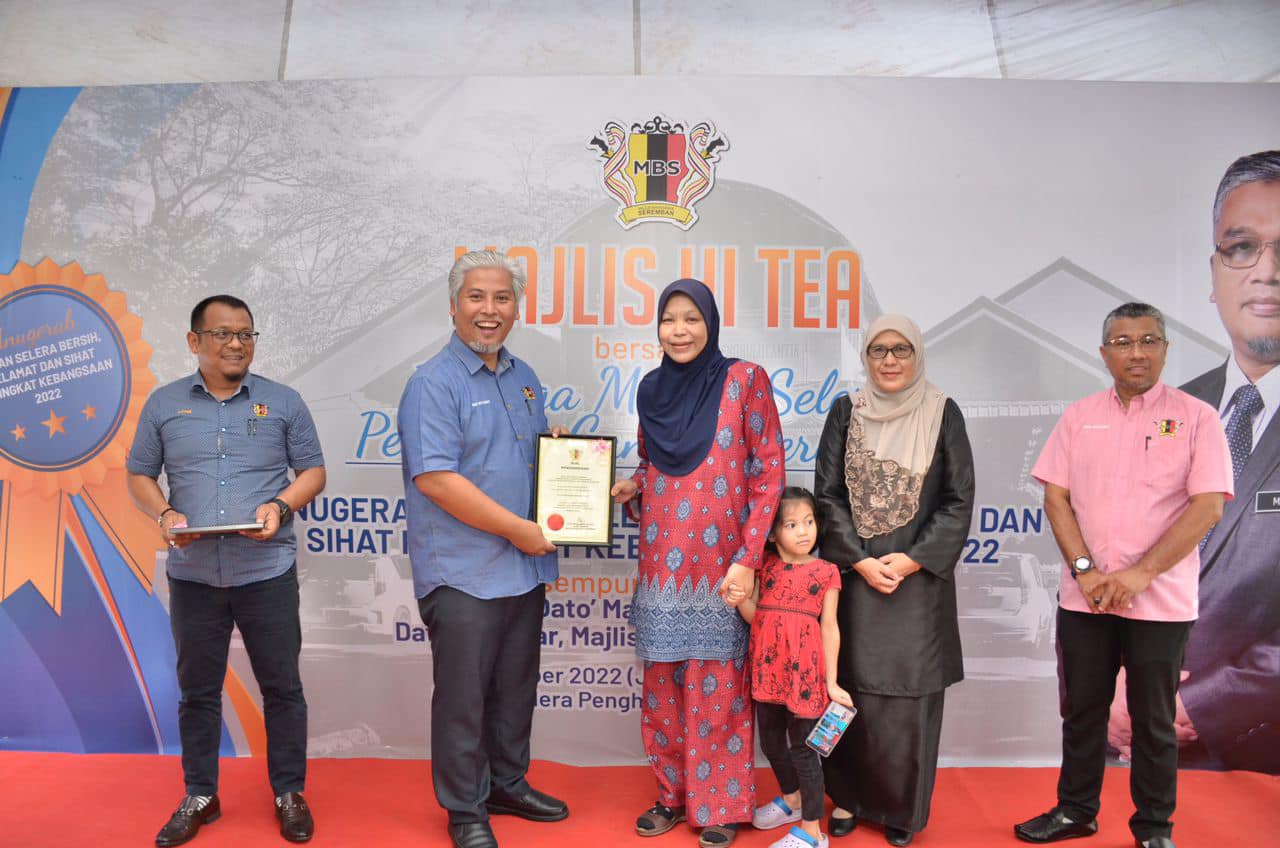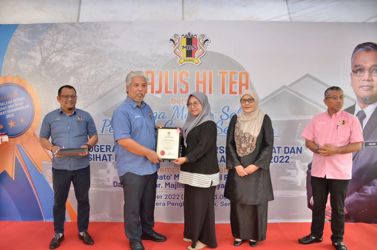 Tuan Mas Midyawan bin Yahya Setiausaha Majlis Bandaraya Seremban telah hadir mewakili YBhg. Dato’ Masri bin Haji Razali Datuk Bandar Majlis Bandaraya Seremban ke Majlis “Hi-Tea” Penghargaan Anugerah Medan Selera Bersih, Selamat dan Sihat Peringkat Negeri dan Kebangsaan Bagi Tahun 2022 di Medan Selera Penghulu Cantik. Majlis ini diadakan adalah untuk meraikan peniaga-peniaga Medan Selera Penghulu Cantik dan semua yang terlibat dalam Pertandingan Anugerah Medan Selera Bersih, Selamat dan Sihat Peringkat Negeri Sembilan Tahun 2022 Kategori Milik PBT/Agensi Kerajaan. Majlis Bandaraya Seremban telah mendapat tempat ketiga dalam pertandingan tersebut dan majlis penyampaian hadiah telah diadakan di Dewan Sri Melati, Pusat Persidangan Perbadanan Putrajaya. Medan Selera Penghulu Cantik telah menerima wang tunai berjumlah RM2,000.00 beserta sijil penghargaan. Turut hadir semasa majlis berlangsung ialah YBhg. Dato’ Dr. Harlina bt Abdul Rashid (Pengarah Kesihatan Negeri Sembiln), Dr. Noor Khalili bin Mohd Ali (Pegawai Kesihatan Daerah Seremban), Abdul Malek bin Adam (Ahli Majlis MBS), Ketua Jabatan & Ketua Unit MBS, Pembantu Ahli Majlis MBS serta peniaga-peniaga Medan Selera Penghulu Cantik.