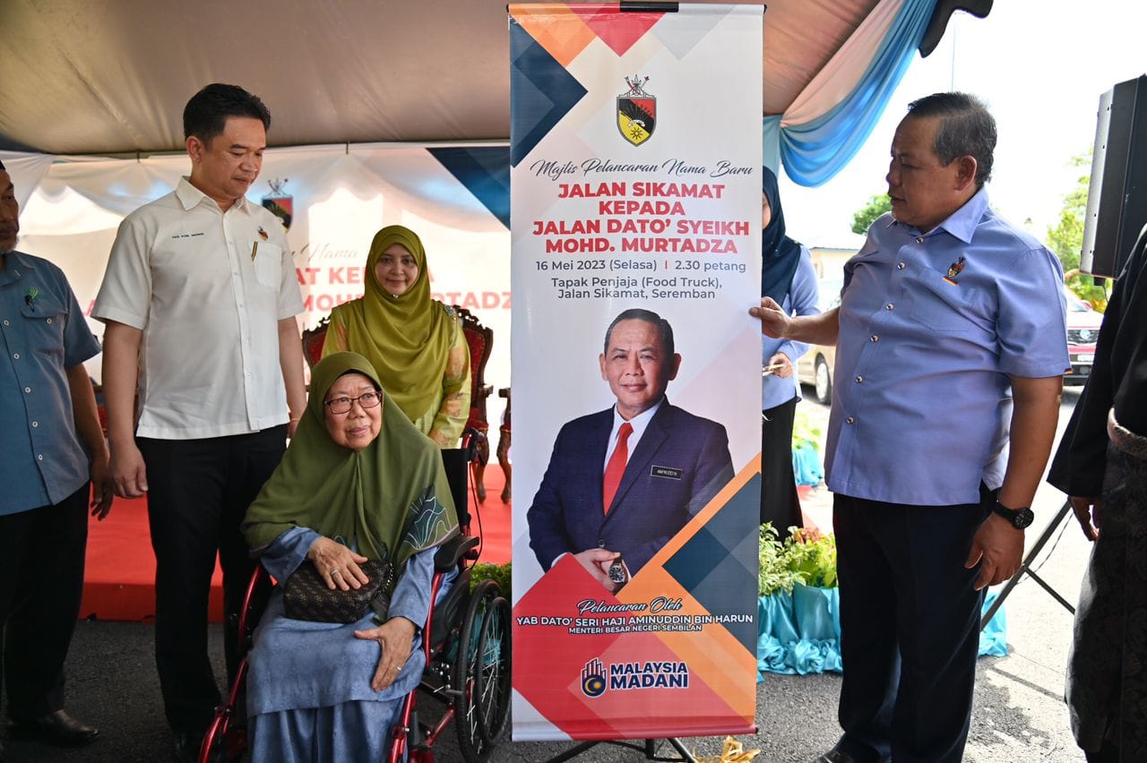 Seremban, 16 Mei 2023 - YAB Dato' Seri Haji Aminuddin bin Harun, Menteri Besar Negeri Sembilan Darul Khusus telah meyempurnakan Majlis Pelancaran Nama Baru bagi Jalan Sikamat kepada Jalan Dato' Syeikh Mohd Murtadza di Tapak Penjaja (Foodtruck), Sikamat.