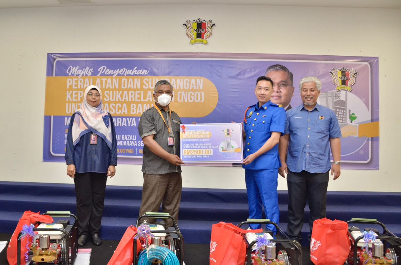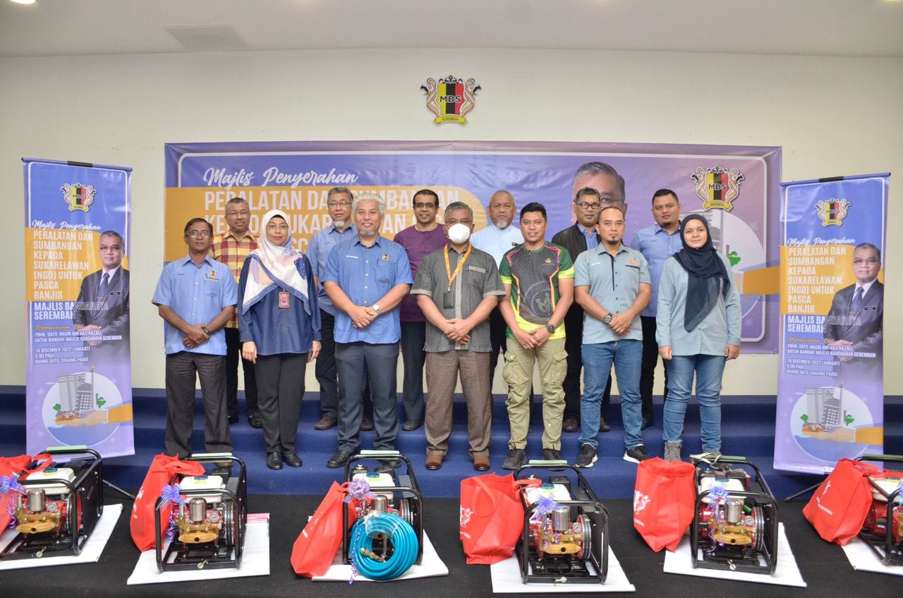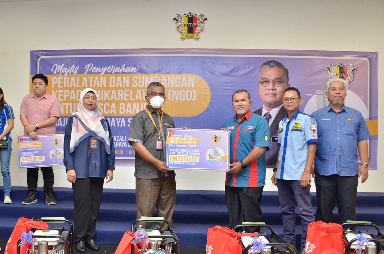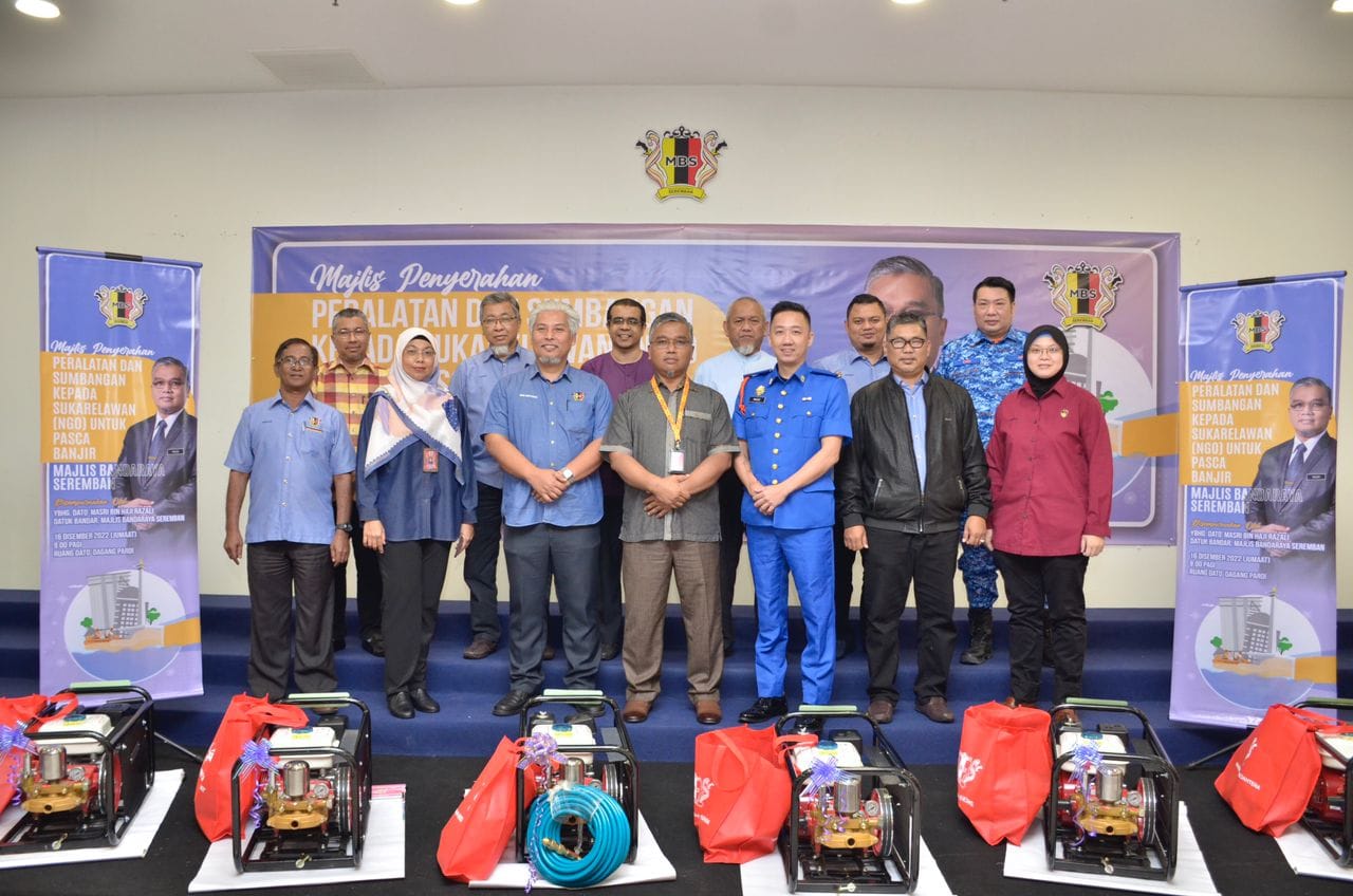 YBhg. Dato' Masri bin Haji Razali telah menyempurnakan Majlis Penyerahan Peralatan & Sumbangan kepada Sukarelawan (NGO) untuk pasca banjir Majlis Bandaraya Seremban. Seramai 7 sukarelawan atau NGO telah menerima sumbangan peralatan dan wang tunai, terdiri daripada NGO 1) Persatuan Kebajikan Magik Negeri Sembilan & Cdert Al-Najah 2) Persatuan Kebajikan HOPE Worldwide Malaysia 3) Neighbour Grace Assembly (Impact Team) 4) Negeri Sembilan Amateur Radio Club (NESRAC) 5) Persekutuan Pengakap Malaysia Negeri Sembilan 6) Pertubuhan Kebajikan Ikhlas Al Mawaddah 7) Persatuan Ikatan Amal Muafakat Malaysia Turut hadir pada majlis tersebut, Ahli-Ahli Majlis MBS, Tuan Mas Midyawan bin Yahya, Setiausaha MBS dan Ketua-ketua Jabatan & Unit Majlis Bandaraya Seremban.