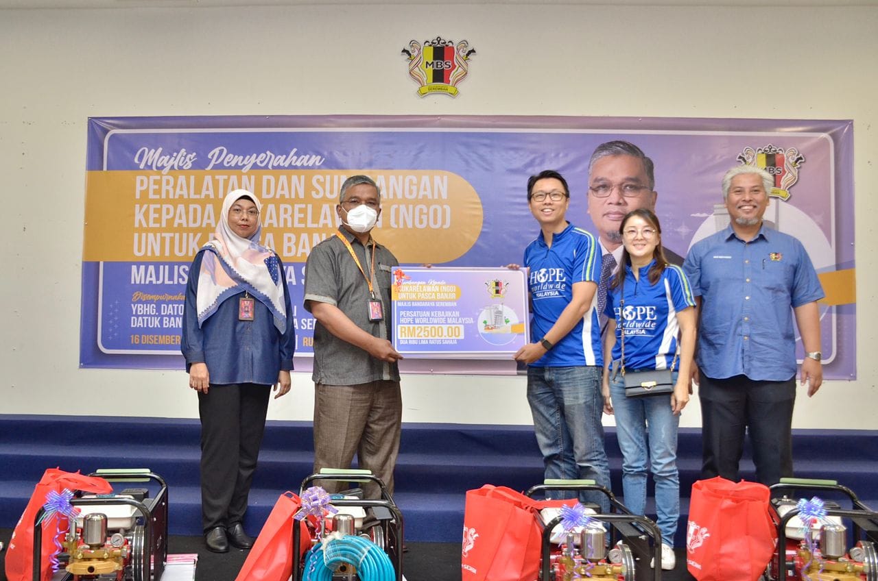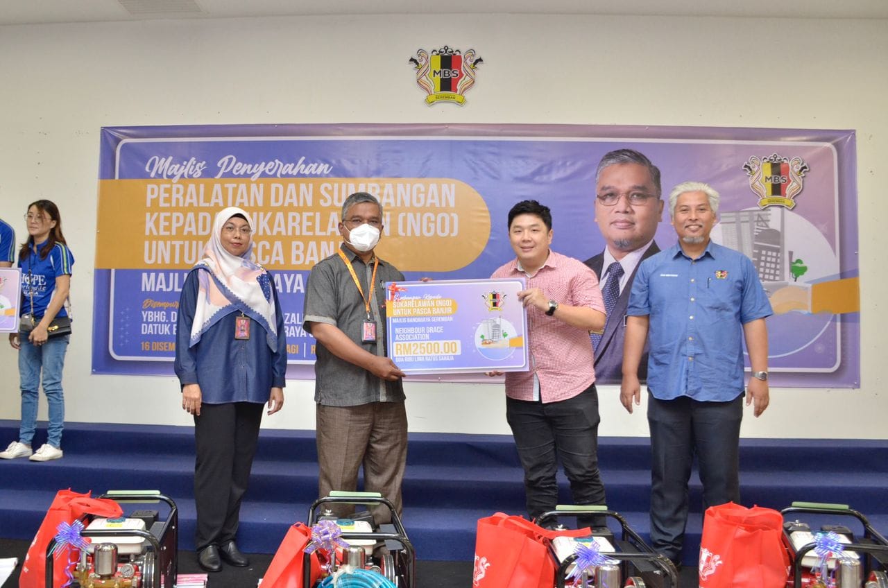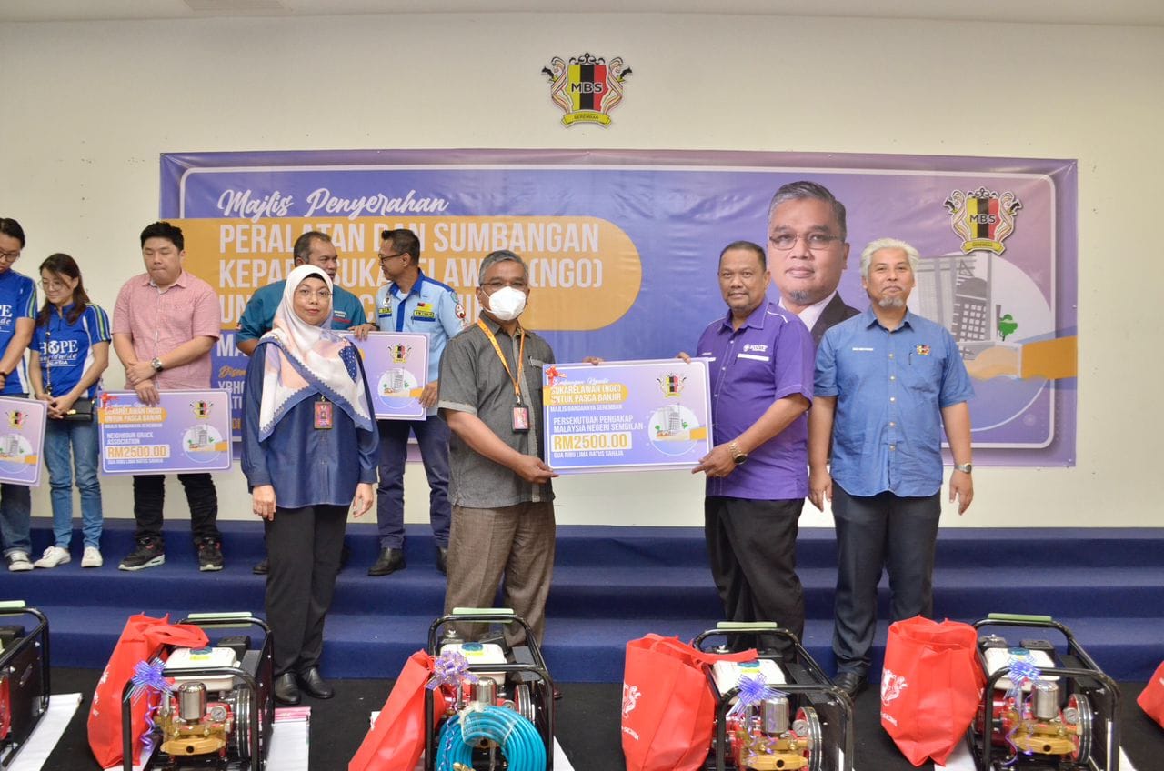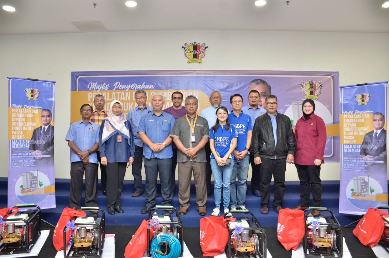 YBhg. Dato' Masri bin Haji Razali telah menyempurnakan Majlis Penyerahan Peralatan & Sumbangan kepada Sukarelawan (NGO) untuk pasca banjir Majlis Bandaraya Seremban. Seramai 7 sukarelawan atau NGO telah menerima sumbangan peralatan dan wang tunai, terdiri daripada NGO 1) Persatuan Kebajikan Magik Negeri Sembilan & Cdert Al-Najah 2) Persatuan Kebajikan HOPE Worldwide Malaysia 3) Neighbour Grace Assembly (Impact Team) 4) Negeri Sembilan Amateur Radio Club (NESRAC) 5) Persekutuan Pengakap Malaysia Negeri Sembilan 6) Pertubuhan Kebajikan Ikhlas Al Mawaddah 7) Persatuan Ikatan Amal Muafakat Malaysia Turut hadir pada majlis tersebut, Ahli-Ahli Majlis MBS, Tuan Mas Midyawan bin Yahya, Setiausaha MBS dan Ketua-ketua Jabatan & Unit Majlis Bandaraya Seremban.