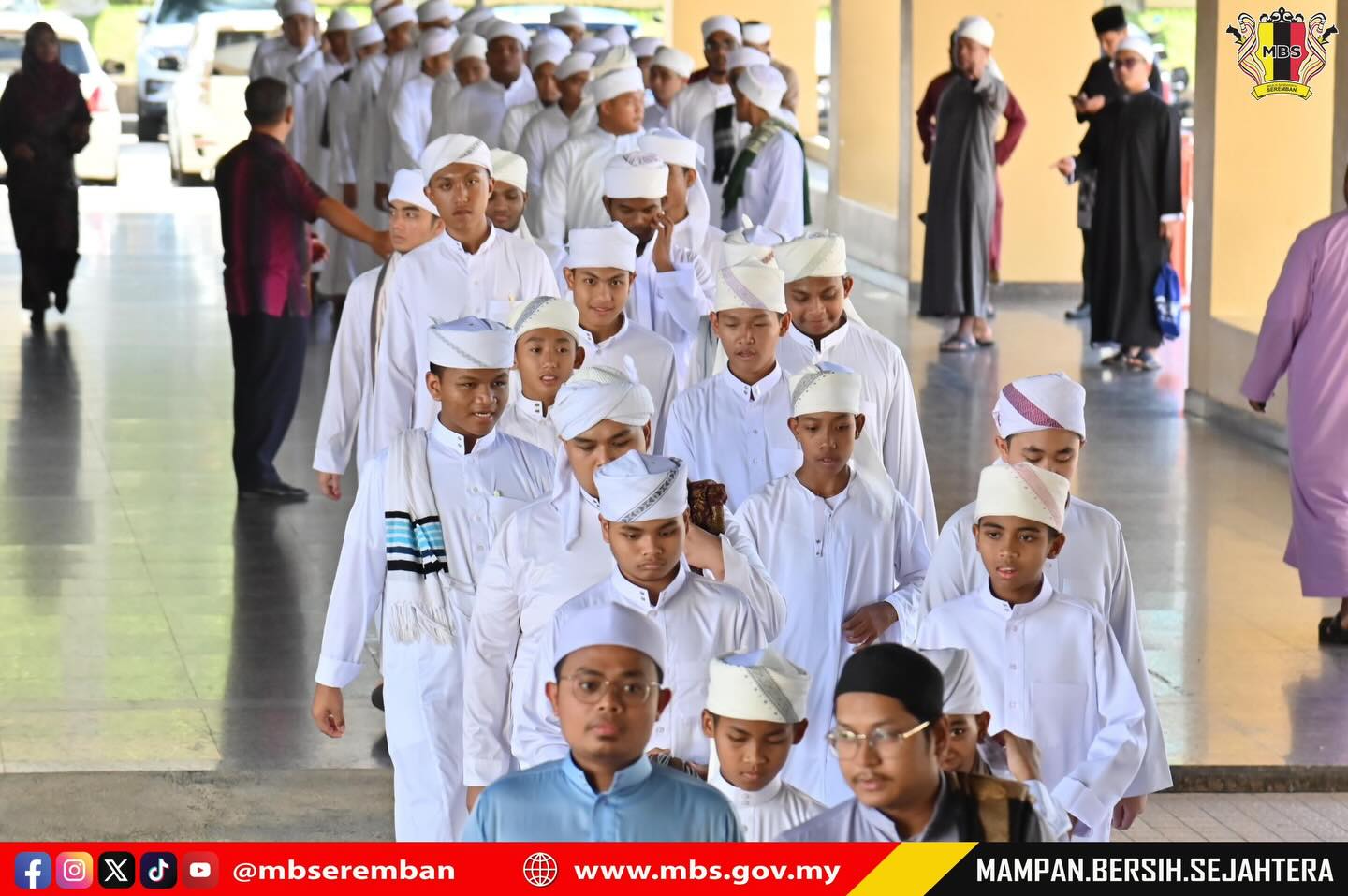 Seremban, 9 April 2026 - YAB Dato’ Seri Utama Haji Aminuddin bin Haji Harun, Menteri Besar Negeri Sembilan Darul Khusus telah menyempurnakan Program Pemberian Zakat kepada Tahfiz Darul Ulum Asy-Syar’iyyah dengan kerjasama Majlis Bandaraya Seremban. Sumbangan zakat sebanyak RM15,000.00 daripada Selia Selenggara yang diwakili oleh Tuan Sr. Haji Abdul Latif bin Hitam, Ketua Pegawai Eksekutif Selia Selenggara Selatan telah disempurnakan oleh YAB Menteri Besar Negeri Sembilan dan diserahkan kepada Tahfiz Darul Ulum Asy-Syar’iyyah. Dalam pada itu, YBhg. Dato’ Ir. Ts. Haji Masri bin Baharuddin, Datuk Bandar MBS dan Tuan Ir. Ts. Br. Mohd Kamal bin Mohd Yusof, Setiausaha MBS turut mengambil peluang menyantuni pelajar-pelajar dan jemputan yang hadir dalam majlis yang sederhana ini. Majlis ini turut dihadiri YB Mohd Zafir bin Ibrahim, Setiausaha Kerajaan Negeri Sembilan, YB Dato’ Muzalmah binti Mustapha Kamal, Penasihat Undang-Undang Negeri, YB Dato’ Masri bin Haji Razali, Pegawai Kewangan Negeri Sembilan, Sahibus Samahah Prof. Madya Dato’ Dr. Faudzinaim bin Badaruddin, Mufti Negeri Sembilan, YAA Dato’ Kamal Bashah bin Ahmad Tajuddin, Ketua Hakim Syarie Negeri Sembilan dan YBhg. Brig Jen Dato’ Zamri bin Othman, Panglima Briged Pertama Infantari Malaysia.