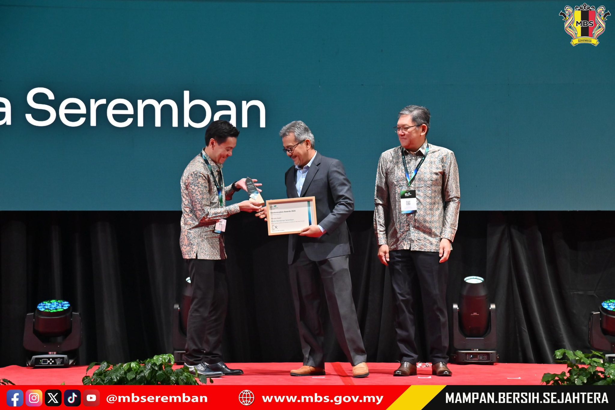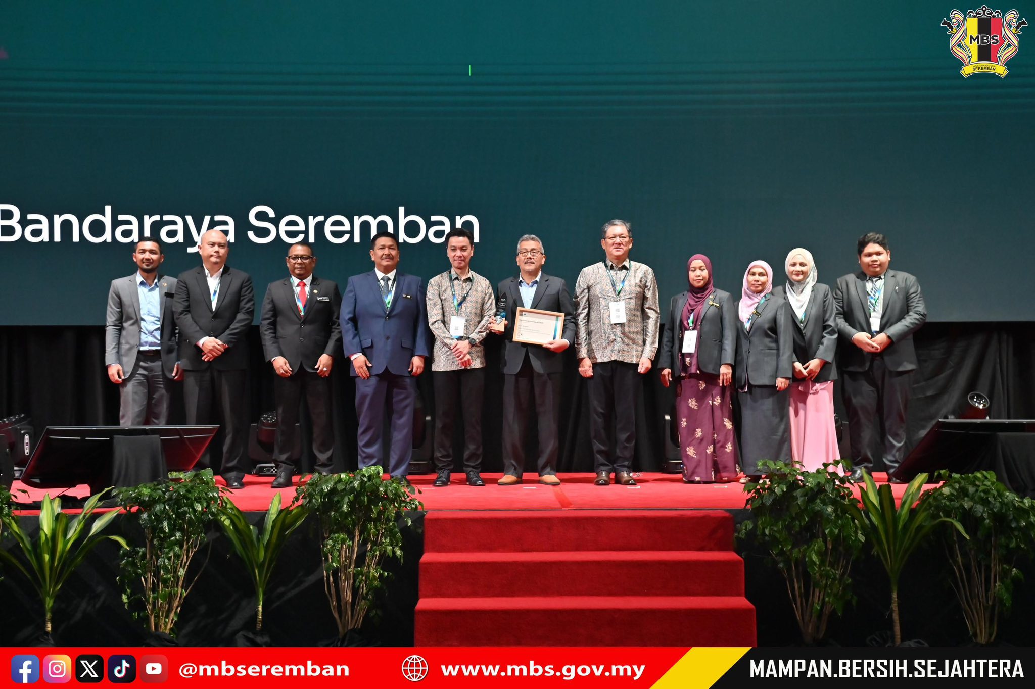 Kuala Lumpur, 22 Januari - Majlis Bandaraya Seremban (MBS) telah memenangi Anugerah Pinnacle Geoinnovation Malaysia 2025. Pengiktirafan anugerah pinnacle ini diberikan bagi menghargai usaha inovatif Majlis Bandaraya Seremban dalam mengadaptasi teknologi geospatial dengan melahirkan sebuah penyelesaian baharu yang mempunyai tahap kematangan yang tinggi serta kecemerlangan yang konsisten bagi meningkatkan kecekapan pengurusan maklumat organisasi secara lebih efisien dan efektif. Anugerah ini telah diterima oleh YBhg. Dato’ Ir. Ts. Hj. Masri bin Baharuddin, Datuk Bandar MBS dan telah disampaikan oleh CEO ESRI Malaysia. MBS telah menghantar pencalonan bagi Sistem Geo-Seremban yang telah mula dibangunkan sejak tahun 2024. Sistem Geo-Seremban merupakan satu sistem pengurusan data spatial bersepadu yang mampu membantu MBS untuk menguruskan perbandaran dengan lebih efisien dengan berpandukan data. Hadir sama TPr. Hj. Nazri b. A.Ghani, Pengarah Jabatan Perancangan Pembangunan, Ts. Farah Saffarizan Bt Mohd Esa, Pengarah Teknologi Maklumat dan Komunikasi, Sr. Nor Zuliana Bt. Abd Manan, Pengarah Penilaian dan Pengurusan Harta, En, Lotffee b. Abdullah, Pengarah Pelesenan & Pembangunan Usahawan serta wakil-wakil jabatan. Syabas dan Tahniah diucapkan.