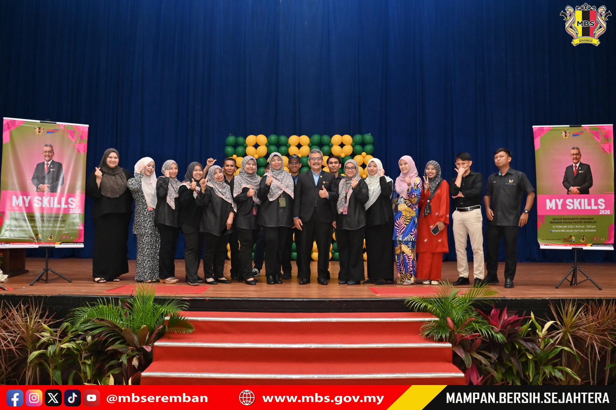 Seremban, 10 Februari 2026 - YBhg. Dato’ Ir. Ts. Haji Masri bin Baharuddin, Datuk Bandar MBS telah menyempurnakan Majlis Perasmian Penutup Program MySkills Anjuran Majlis Bandaraya Seremban Bersama KEMAS Negeri Sembilan di Dewan MBS, Jalan Yamtuan, Seremban. Seramai 75 orang peserta hadir terdiri masyarakat di dalam dan luar daerah Seremban mengikuti 4 kursus iaitu Kursus Masakan, Kursus Dandanan Diri, dan Kursus Seni Tangan dan Kursus Gunting Rambut. Objektif pelaksanaan kursus adalah untuk membantu masyarakat dalam mendaya upaya kemahiran diri dan seterusnya menjana pendapatan melalui kemahiran kursus yang diberikan terutamanya kepada golongan B40. Semua kursus yang diberikan ini adalah ditanggung sepenuhnya oleh Majlis Bandaraya Seremban dan diberikan secara percuma kepada masyarakat untuk memastikan masyarakat di Daerah Seremban mendapat manfaat yang sebaiknya serta mampu melahirkan ramai lagi usahawan-usahawan di daerah ini. Turut hadir sama Pn. Nor'ein binti Mohd Shukor, Pengarah KEMAS Negeri Sembilan, Puan Azura binti Abu Hassan, Pengarah Pembangunan Masyarakat dan Pelancongan MBS, tenaga-tenaga pengajar KEMAS Negeri Sembilan dan kakitangan MBS serta peserta kursus.