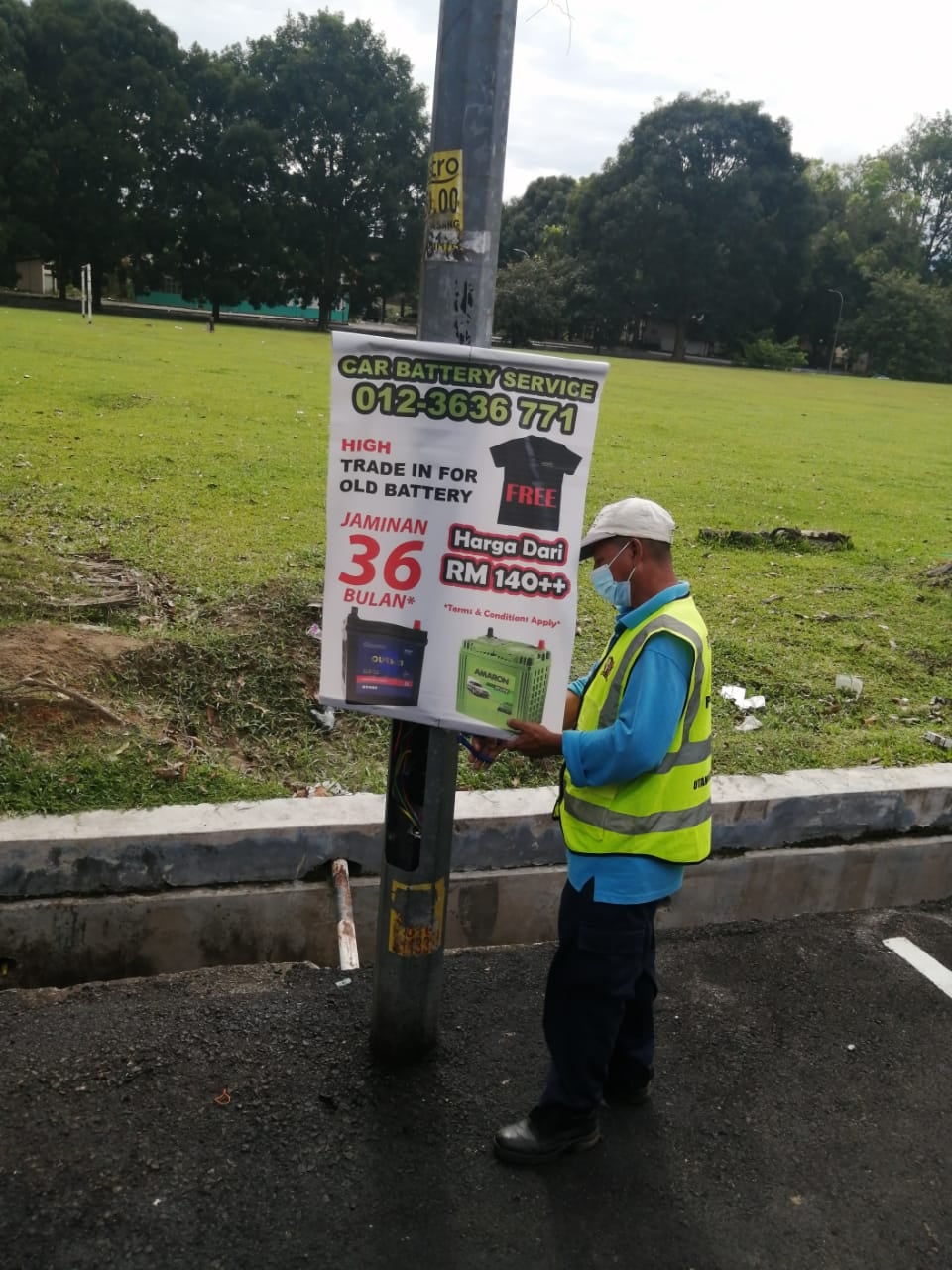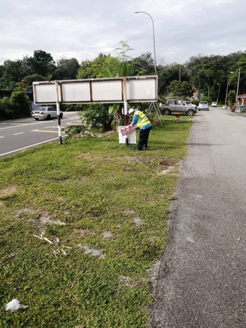 KERJA-KERJA MEMBUKA PAPAN IKLAN/BUNTING/BANNER HARAM