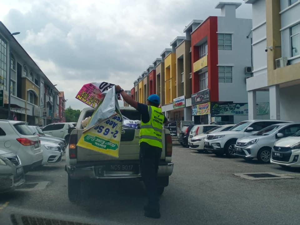 KERJA-KERJA MENURUNKAN POSTER, BUNTING, BANNER HARAM & TAMAT TEMPOH