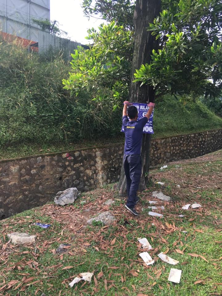 KERJA-KERJA MENURUNKAN POSTER BUNTING BANNER HARAM & TAMAT TEMPOH