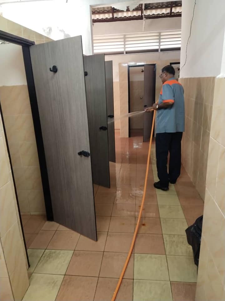 KERJA-KERJA PEMBERSIHAN INFRASTRUKTUR AWAM DI TANDAS AWAM TAMAN