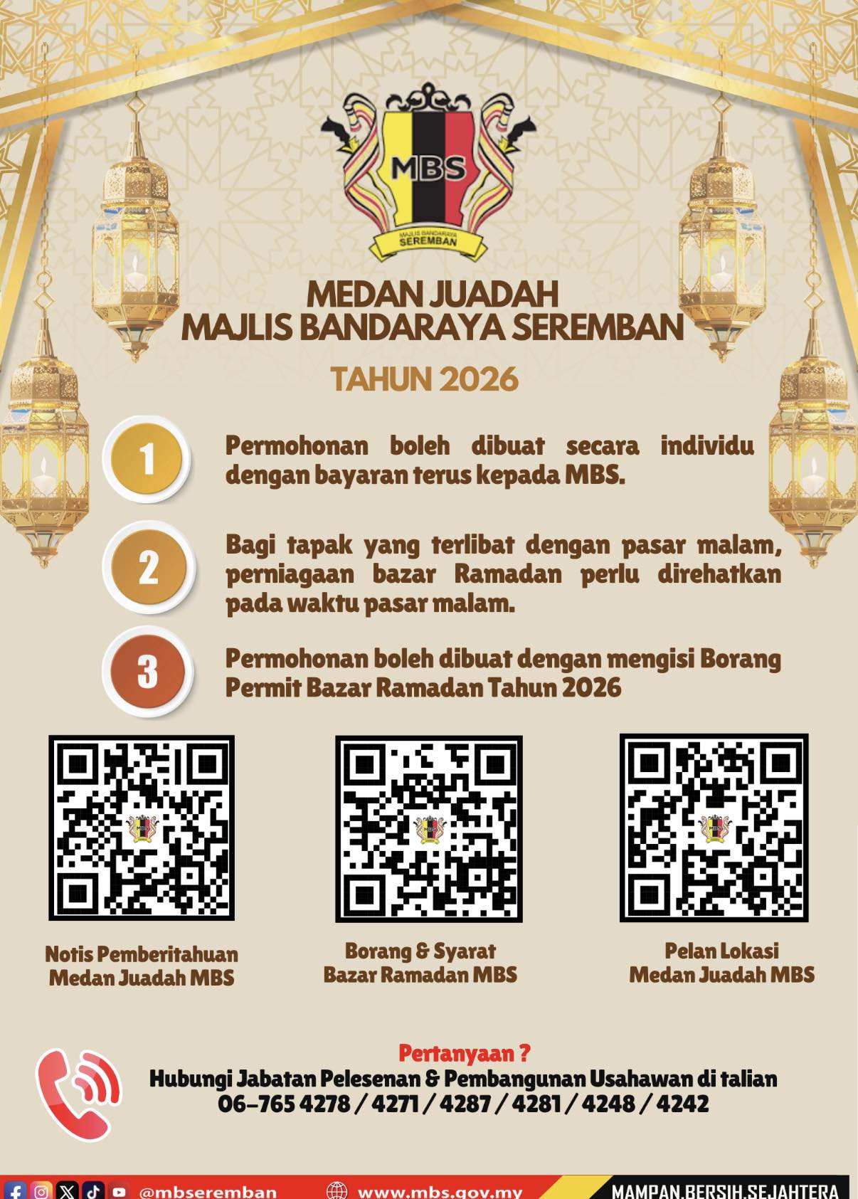 42 views Warga bandaraya Seremban yang berminat boleh mengimbas kod QR seperti dipaparan dan hubungi Jabatan Pelesenan & Pembangunan Usahawan MBS ditalian :- 06765 4278 / 4271 / 4287 / 4281 / 4248 / 4242