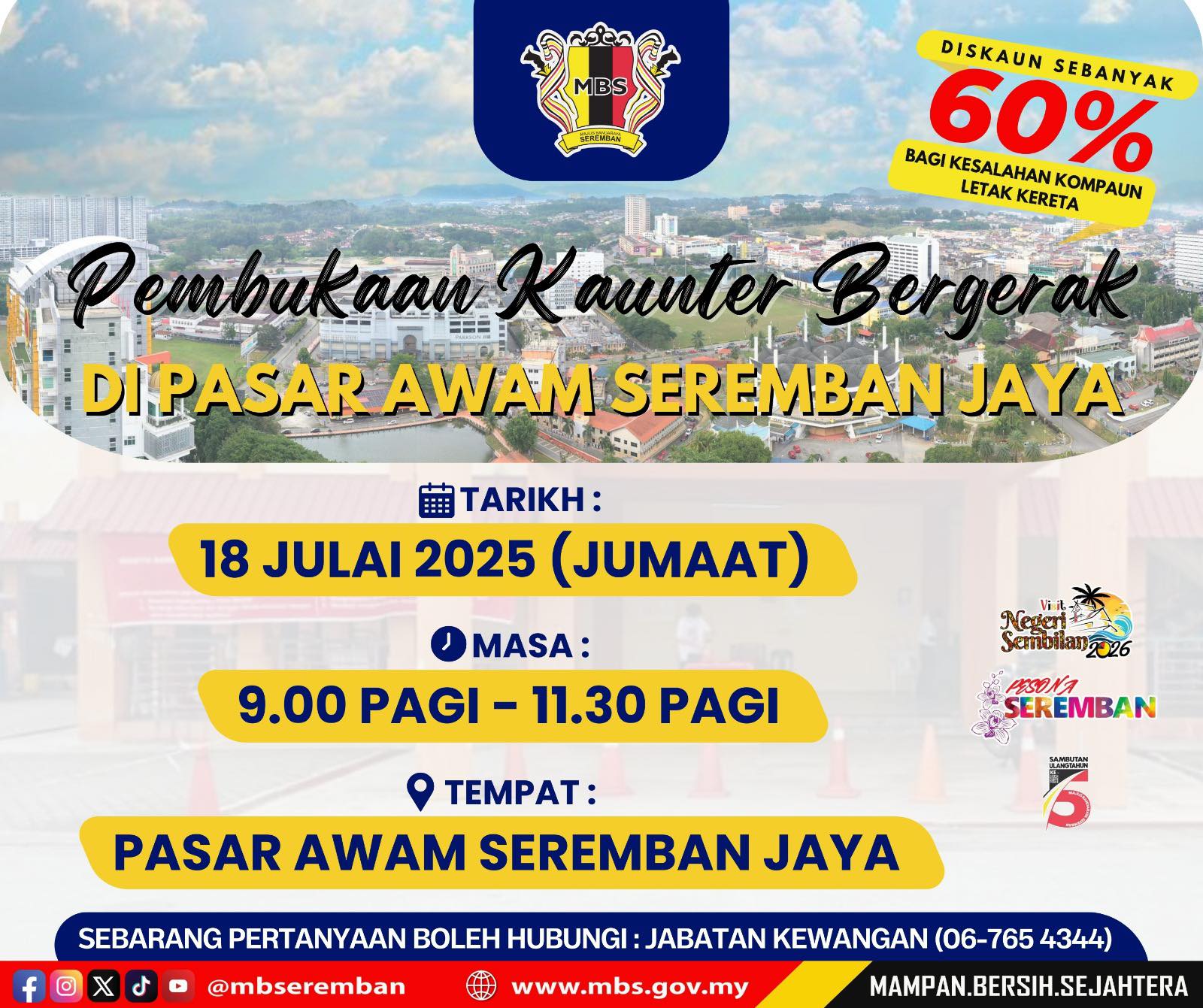 Sebarang pertanyaan hubungi Jabatan Kewangan MBS di talian 06-7654344